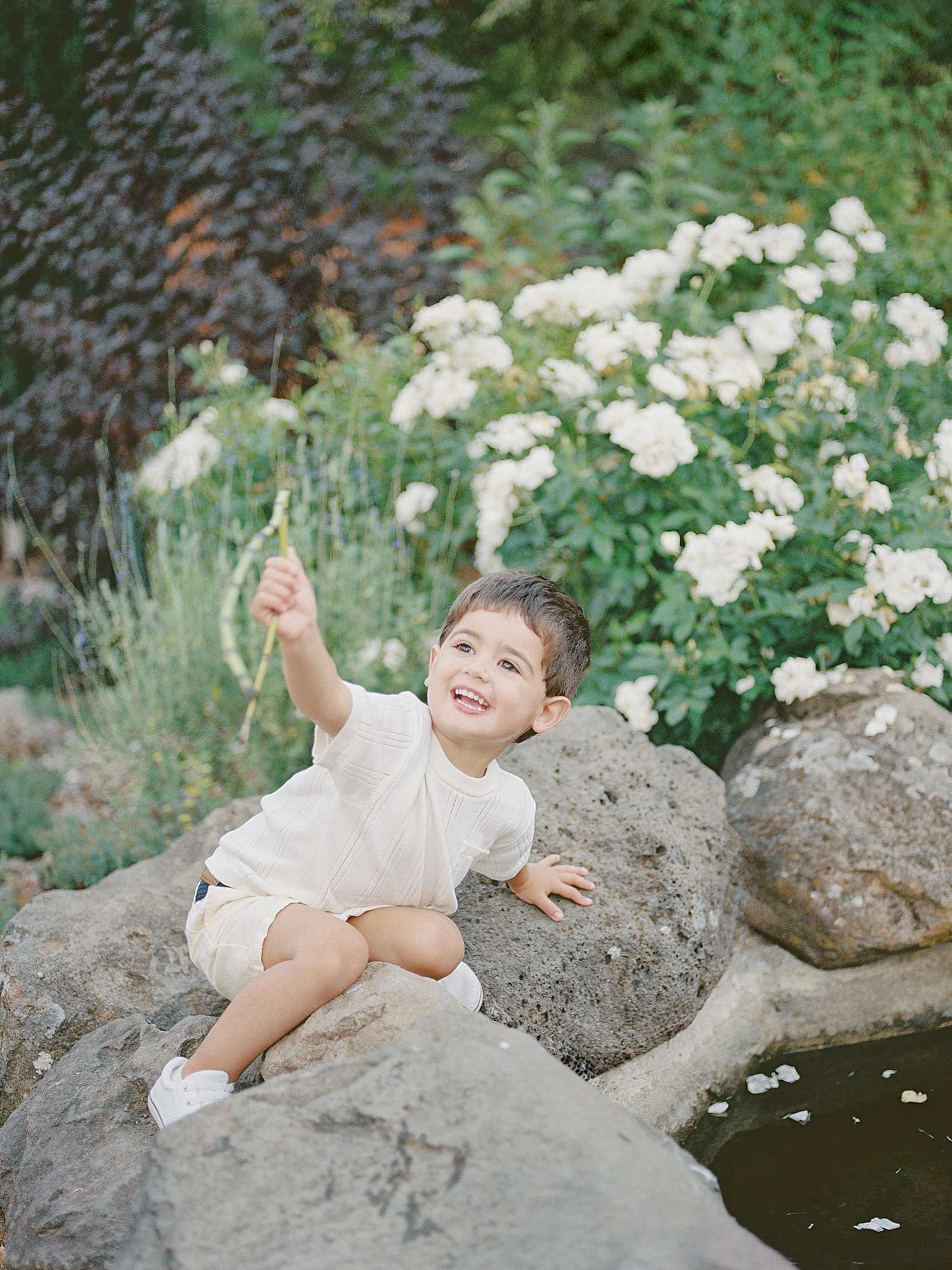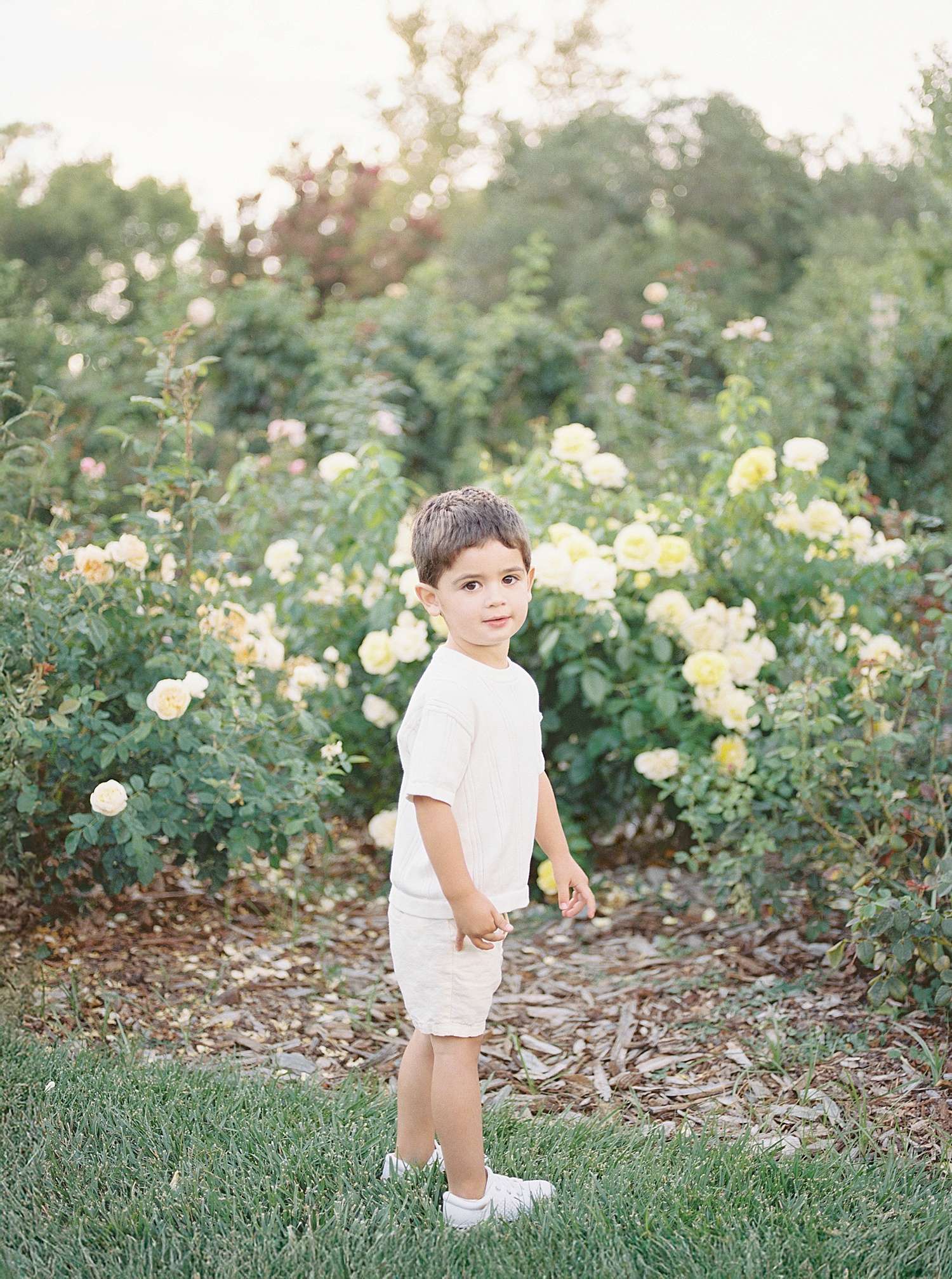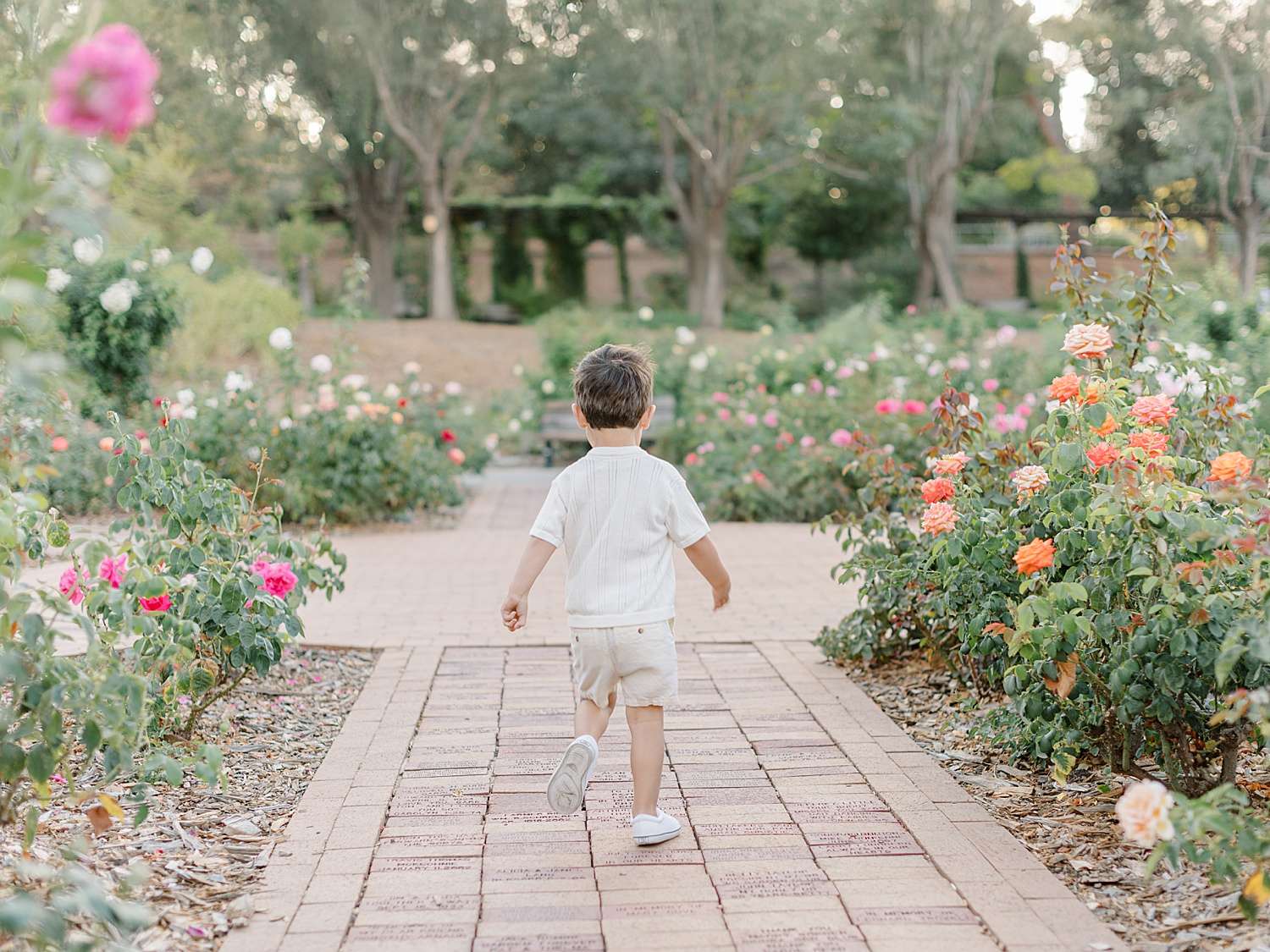 At three years old, this birthday boy is right in that in-between stage—no longer a baby, but not quite a big kid either. His parents wanted to remember exactly who he is right now: curious, joyful, thoughtful, and brave. From the moment we started, he was off exploring the garden, running along the paths, stopping to gently smell the roses, and proudly carrying little sticks he found along the way.